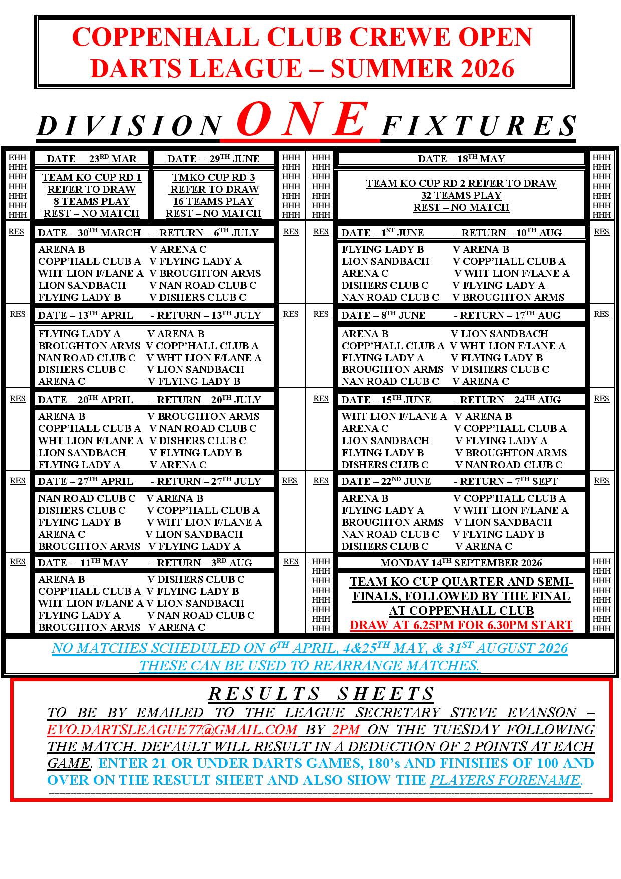 SUMMER Division One Fixtures