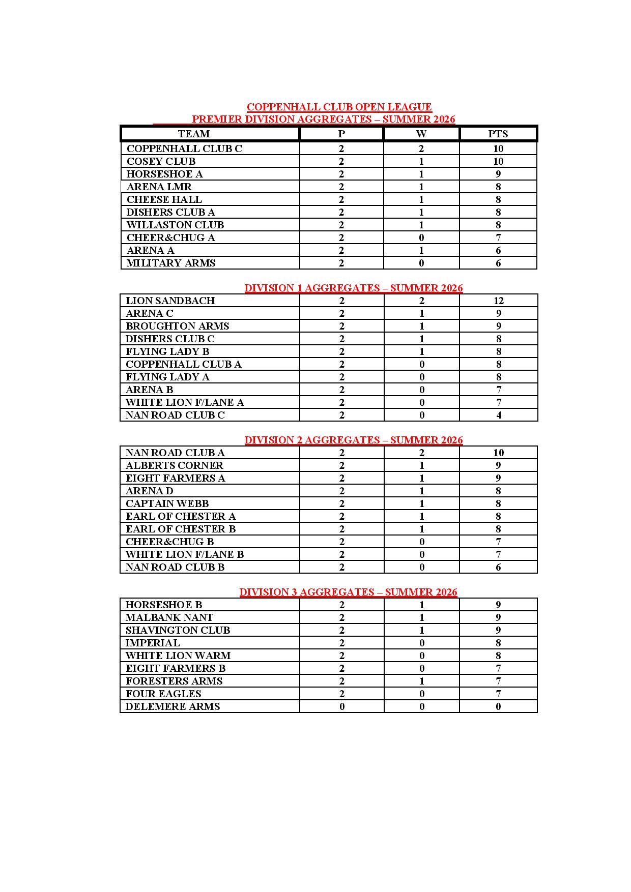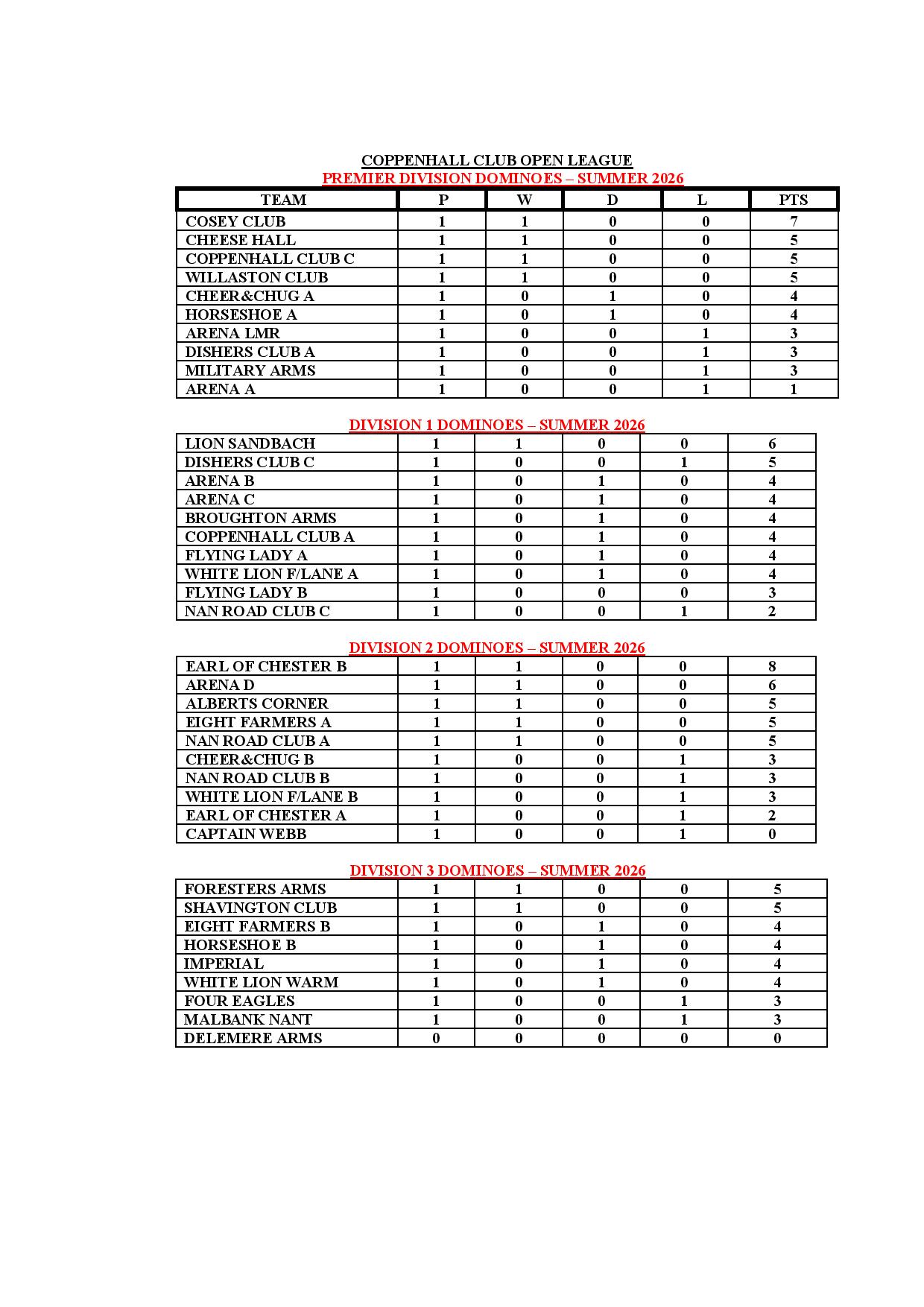 The Coppenhall Club Open League