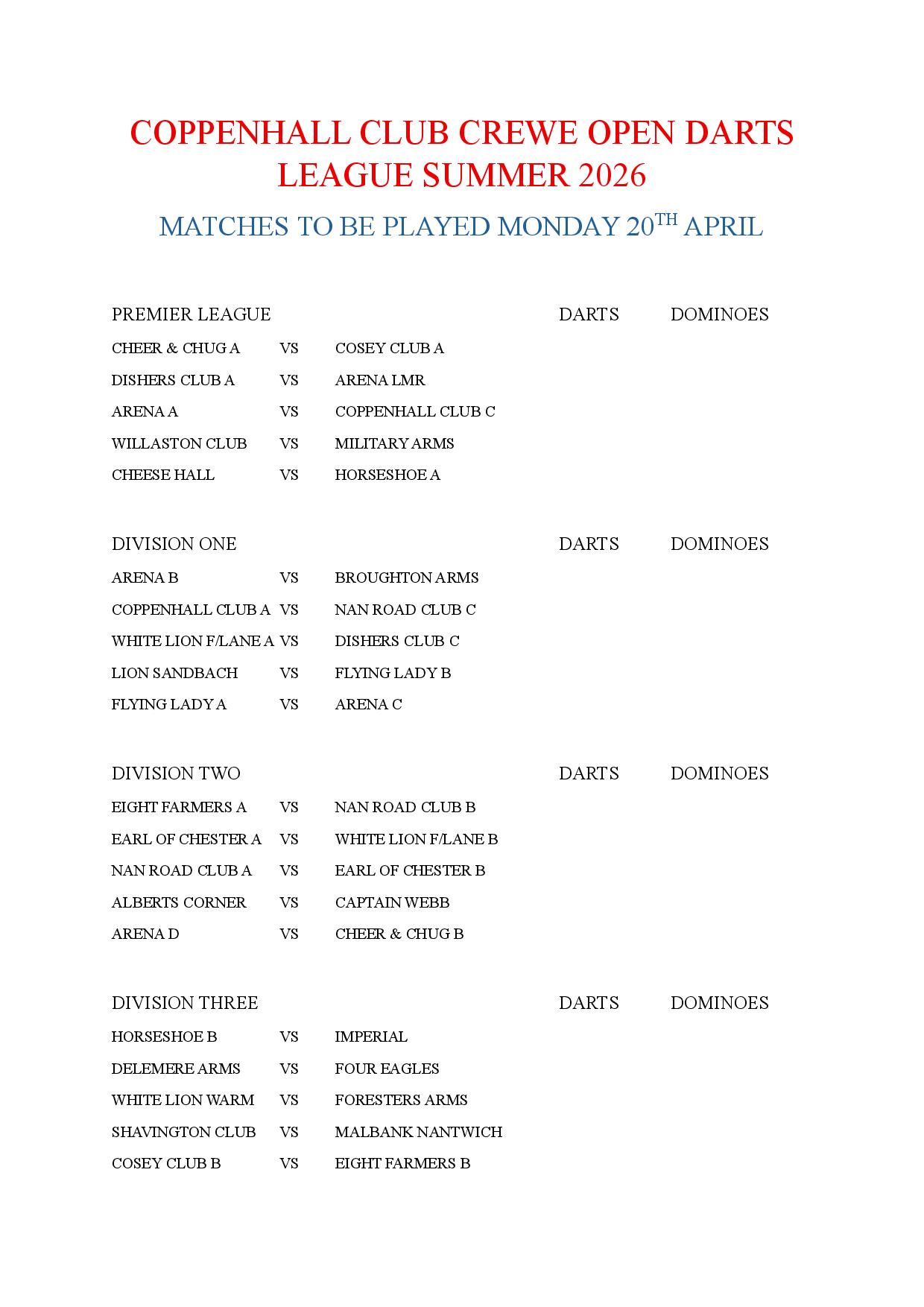 Local News For The Crewe Darts & Dominoes League