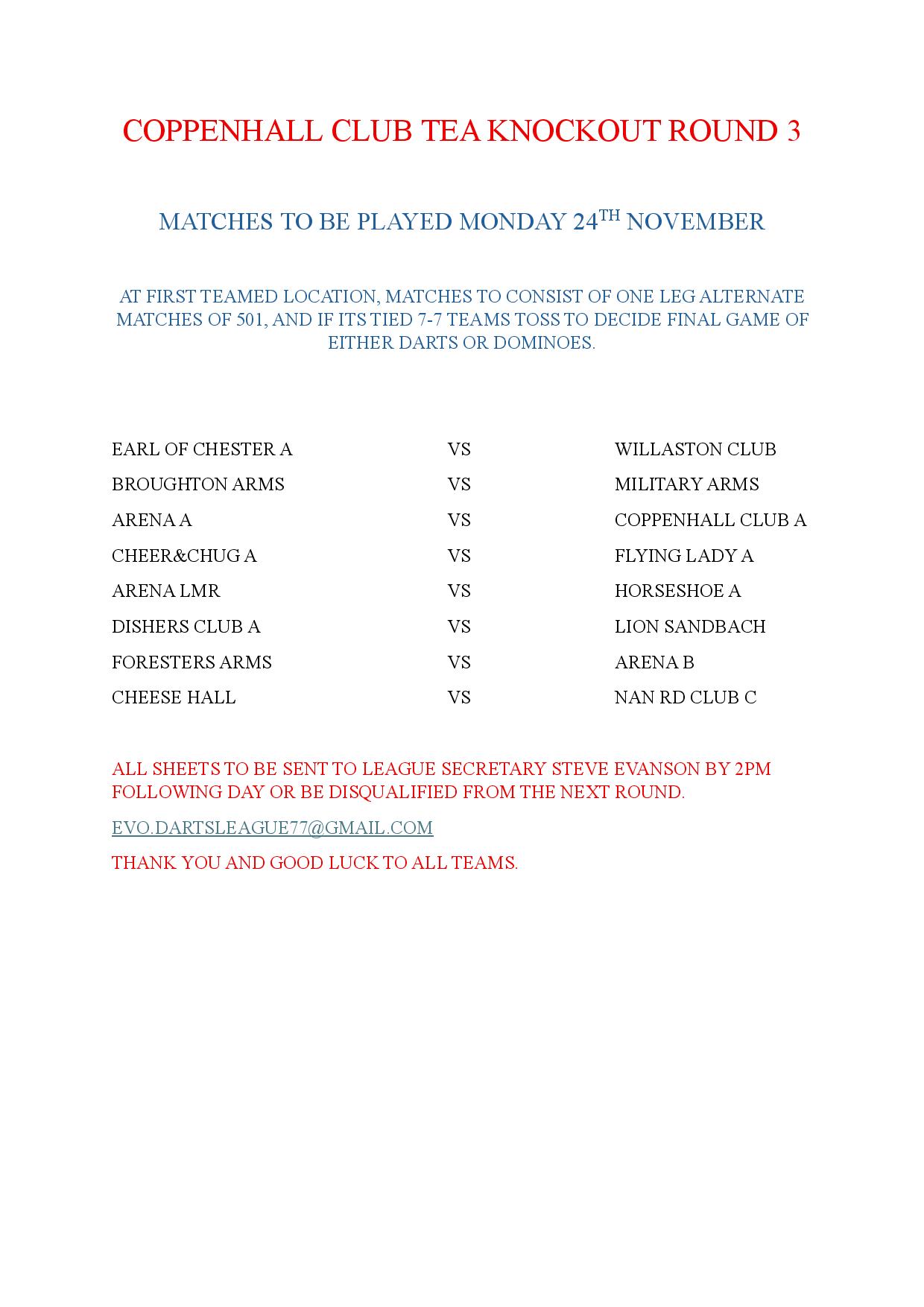 Matches to be played Monday 24th November at 8:15pm Post navigation Winter Week 7 Fixtures 3/11/25 Winter Week 8 Fixtures 10/11/25