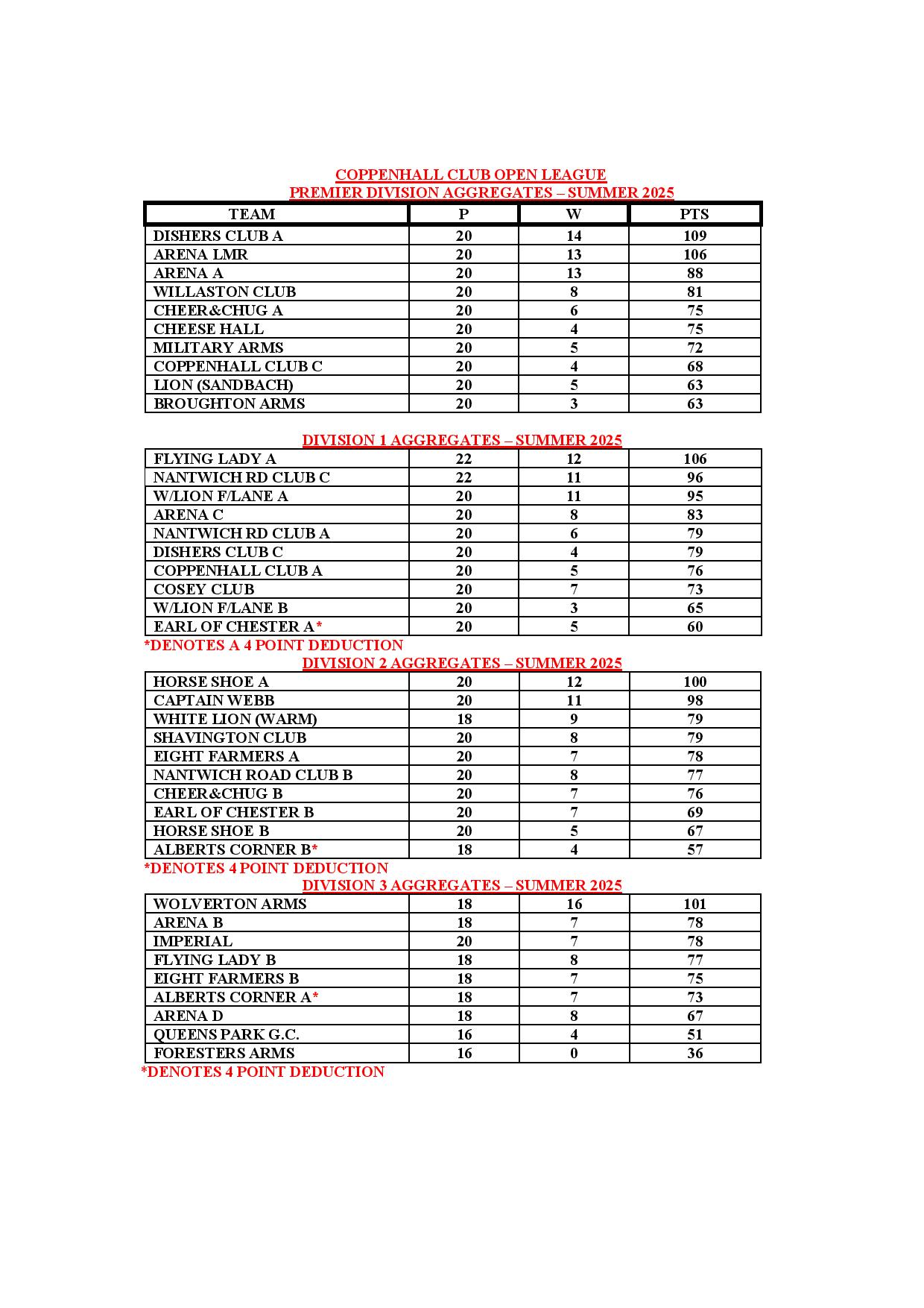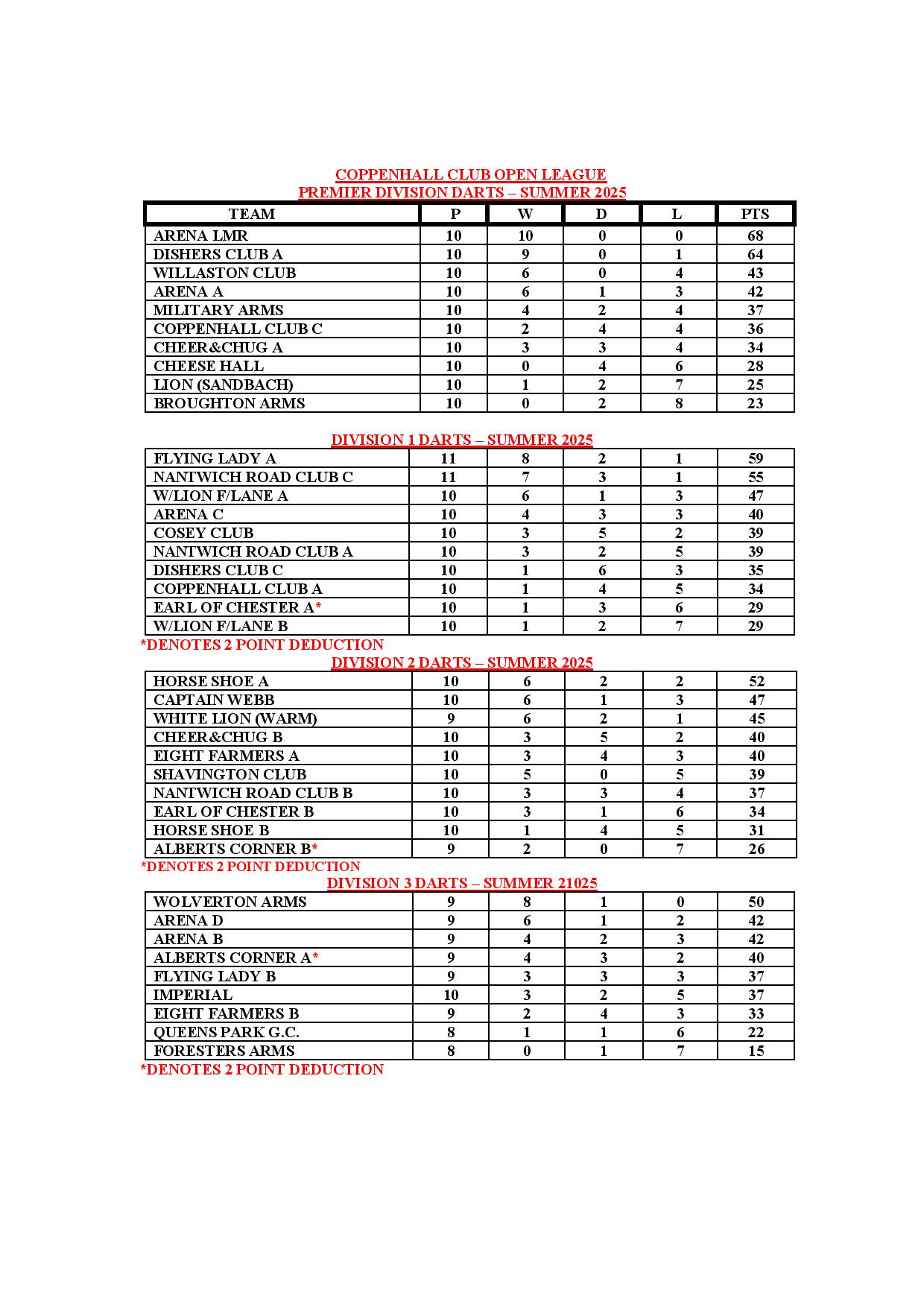 Post navigation Week 9 Tables 2/6/25 Summer Week 10 Tables Updated After Alberts Corner B Scores Have Been Scrubbed.