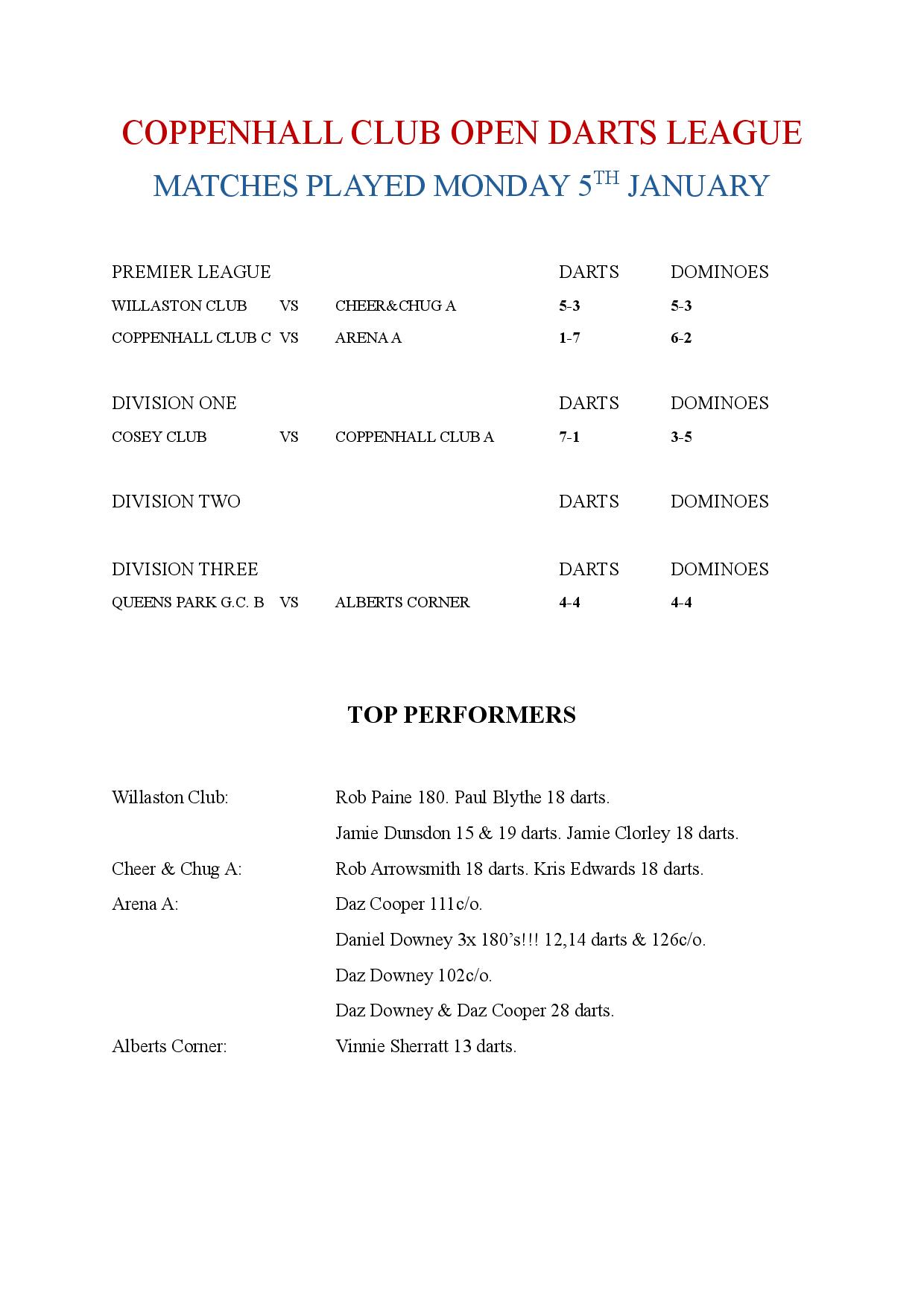 Local News For The Crewe Darts & Dominoes League